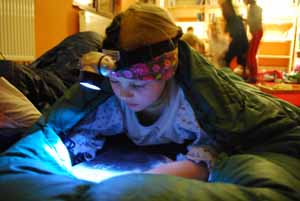 Am Freitag, den 27. März sind wir um 19.00 Uhr zur Schule gekommen. Frau Bräutigam und Frau Millert warteten in der Bibliothek auf uns. Wir legten unsere Matten gleich auf den Boden. Dann packten wir unsere Taschenlampen, Schlafsäcke Bücher, Schlafanzüge und Trinkflaschen aus. Danach machten wir einen Kreis und Frau Bräutigam stellte uns ein Tablett mit Obst hin. Etwas später kuschelten wir uns in unsere Schlafsäcke und fingen an zu lesen. Frau Bräutigam und Herr Albrecht lasen den Kindern vor, die am Anfang nicht selber lesen wollten. Aber manche Kinder konnten nicht lesen, weil es viel zu aufregend war. Doch irgendwann schliefen alle und ein Kind schnarchte sogar.