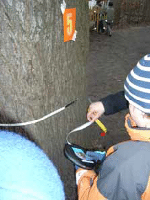 Passend zu dem Werkstatt-Thema Geometrie starteten wir eine Maßband- Rallye. Los ging es an einer der 8 Stationen, die auf dem Schulgelände ausgeschildert waren. Mit dem Maßband in der Hand arbeiteten die Teams sich durch die verschiedenen Aufgaben. So sollte z.B. das Fussballfeld ausgemessen oder die Breite des Baumes bestimmt werden. Am Ziel angelangt wurden alle Teilnehmer mit einer Gummischlange zum in die Länge ziehen und Verspeisen belohnt.