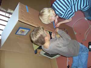Diesen Kenntnisstand der Wissenschaft wollten die blauen Kamuffel im Rahmen des Kunstunterrichts widerlegen. Sie beschlossen – nach ersten Zeichnungen in die Zeit von Cowboys und Indianern, Tyrannosaurus Rex und Weltraumexpeditionen – eine eigene Zeitreisemaschine zu bauen. Über Wochen wurden verschiede Materialien gesammelt. Angefangen von Fahrradpedalen über Leiterplatten und Fernsehantennen bis hin zum kompletten Computer. Nun machten die blauen Kamuffel sich an die Arbeit und setzten ihre Zeitmaschinenskizzen um. Sie konstruierten und gestalteten mit viel Fantasie und Liebe (bis ins kleinste Detail) ihre „blaue“ Zeitreisemaschine. Das tolle Ergebnis ist in einer Ausstellung im alten Klassenraum der blauen Kamuffel zu bewundern!