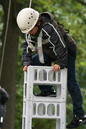 Das Klettern auf Kisten, das war ziemlich schwer.