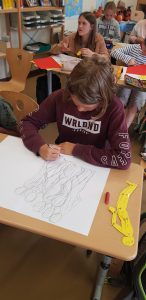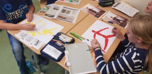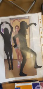 Gar nicht so einfach… Um auf unsere Amphoren menschliche Figuren zeichnen und malen zu können, müssen wir erstmal ein wenig üben. Wichtig ist es, dass wir mutig sind und einfach Menschen modellieren, Schablonen umzeichnen, Bewegungsabläufe zeichnen, abpausen, Fotos machen, Scherenschnitte anfertigen …. Wir schauen uns dazu auch im Buch an, wie so ein Körper eigentlich aufgebaut. Welche Gelenke gibt es an welchen Stellen, wie ist Knochen- und Muskelaufbau?