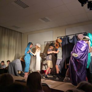 Auf diese aufregende Reise haben die gelben Leffus die Zuschauer mitgenommen. Entstanden sind diese Theaterstücke in einer AG von unserem FSJler Georg und der Unterstützung von unserer FSJlerin Anne. Dabei konnten die Kinder sich Texte überlegen, viel Proben und die Kulissen und Kostüme selber gestalten. Am Ende gab es ein Happy End und großen Applaus für die jungen Schauspieler*innen.