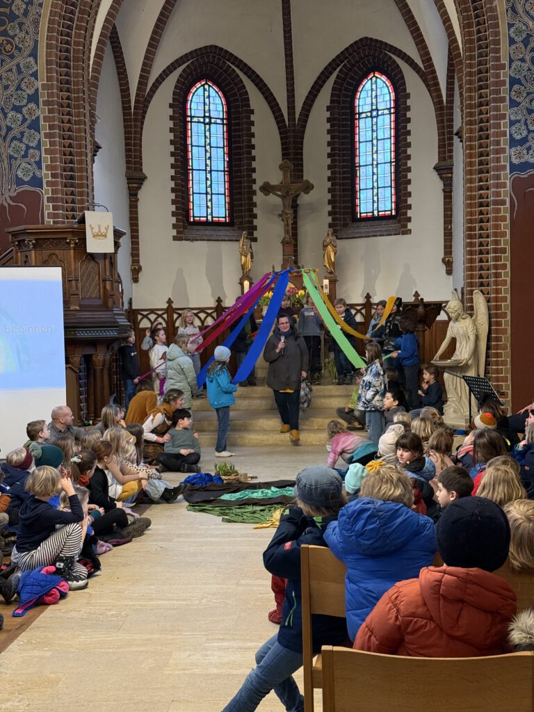 Und da zu jedem Abschied auch ein Neuanfang gehört, begrüßten wir direkt nach den Winterferien unsere neue Schulleiterin Stefanie Bindemann. Bei der Andacht segneten wir sie unterm Regenbogen als unser neues Mitglied der Schulgemeinschaft. Wir freuen uns sehr auf die Zusammenarbeit und neuen Erfahrungen, die wir gemeinsam machen werden! Gott spricht: „Siehe, ich mache alles neu!“ (Offenbarung 21,5)