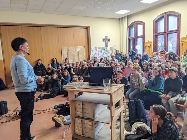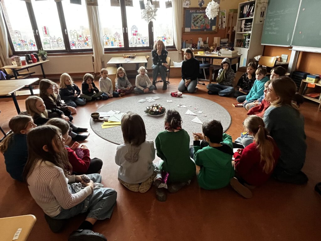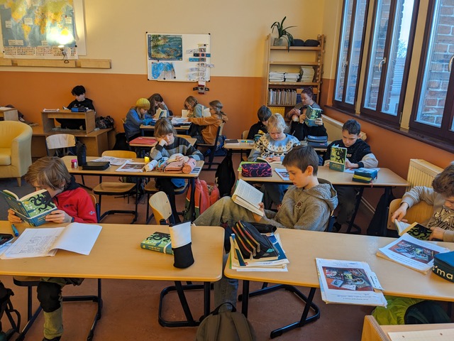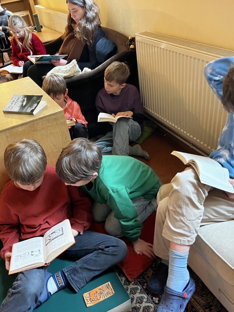 An unserem Vorlesetag am 2. Dezember 2025 wurde wieder das LESEN gefeiert. Neben Büchertausch und Vorlesefrühstück, in dem die Leffus in den Kamuffelklassen vorlasen, standen wieder viele spannende und kreative Angebote auf dem Programm. Als besonderen Gast durften die Fünftes und Sechsties den Autor Thilo Krapp begrüßen und einer eindrucksvolle Lesung seiner Graphic Novel „20.000 Meilen unter dem Meer“ lauschen. Beim Austausch in den Klassen am Ende des Tages wurde klar: Alle Angebote waren ganz wunderbar! Einige haben es genossen, im Comenius Kindergarten oder in der Oberlinschule vorzulesen, andere berichteten begeistert von afrikanischen Märchen oder anderen Geschichten und zeigten stolz Freundschaftsarmbänder, selbst gebundene Hefte oder Weihnachtsschmuck. Wieder einmal ein sehr gelungener Tag! Danke an alle, die uns besucht haben und uns das Lesen noch näher gebracht haben.