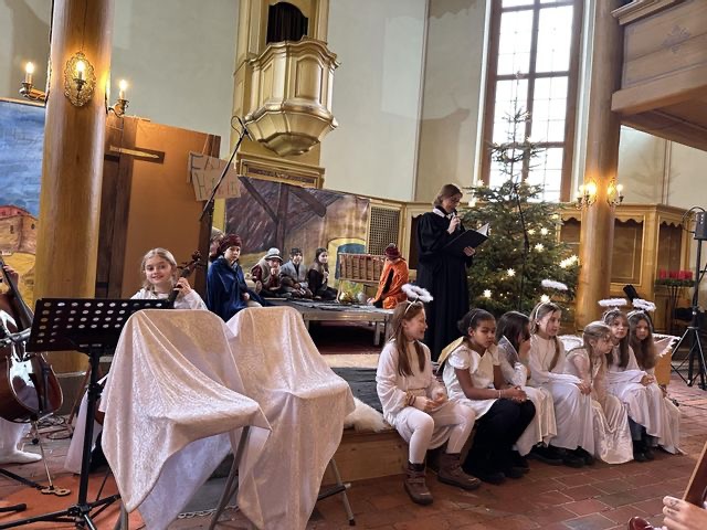 Die blauen Leffus haben den diesjährigen Weihnachtsgottesdienst gestaltet. In diesem Jahr stand die „Botschaft der Engel“ im Vordergrund. Dafür haben die Kinder fast 2 Monate geprobt und haben nach eigenen Aussagen dabei viel gelernt @Texte, @ins Mikrophon sprechen, @sich trauen vor 400 Menschen zu sprechen @sich zeigen mit Kostüm. Aufgeregt und mit viel Freude zeigten sich dann alle blauen Leffus am 19. Dezember der übrigen Schulgmeinschaft in der Friedrichskirche.